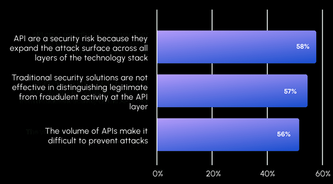 A significant 58% of respondents either strongly agree or agree with the assertion that APIs expand the attack surface across all layers of the technology stack. This highlights a widespread recognition of the risk introduced by APIs, despite their indispensable role in the digital landscape.