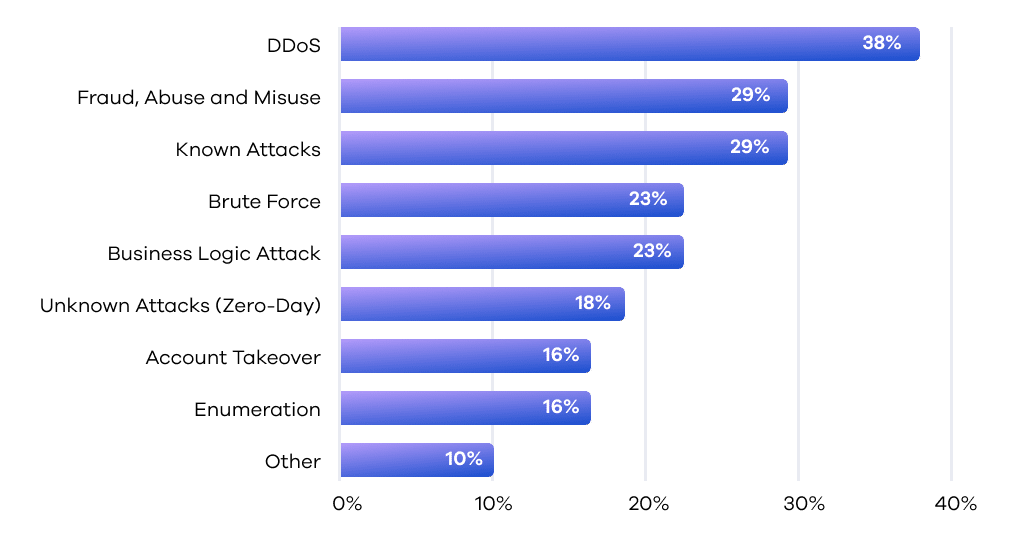 Our survey underscores that DDoS attacks stand out as the predominant API attack method resulting in a breach, with 38% of respondents confirming this.