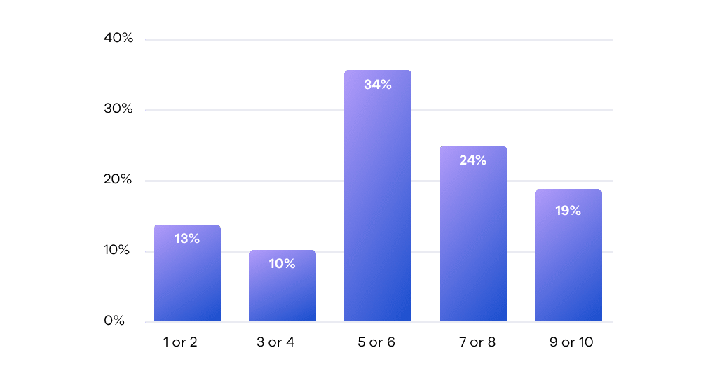 34% of organizations feel uncertain about the efficacy of their tools like WAF and WAAP, rating them as moderately effective (scores of 5 or 6). Meanwhile, 23% rate theirs as less effective (scores of 1 to 4). Although 43% find their solutions more satisfactory (scores of 7 to 10), it underscores that over half aren’t fully confident in their API security measures.