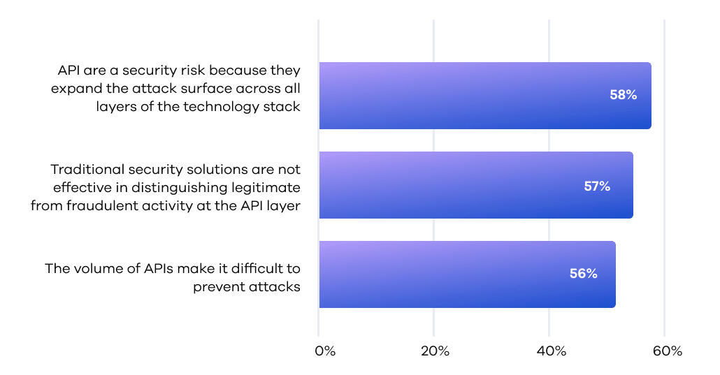 A significant 58% of respondents either strongly agree or agree with the assertion that APIs expand the attack surface across all layers of the technology stack. This highlights a widespread recognition of the risk introduced by APIs, despite their indispensable role in the digital landscape.