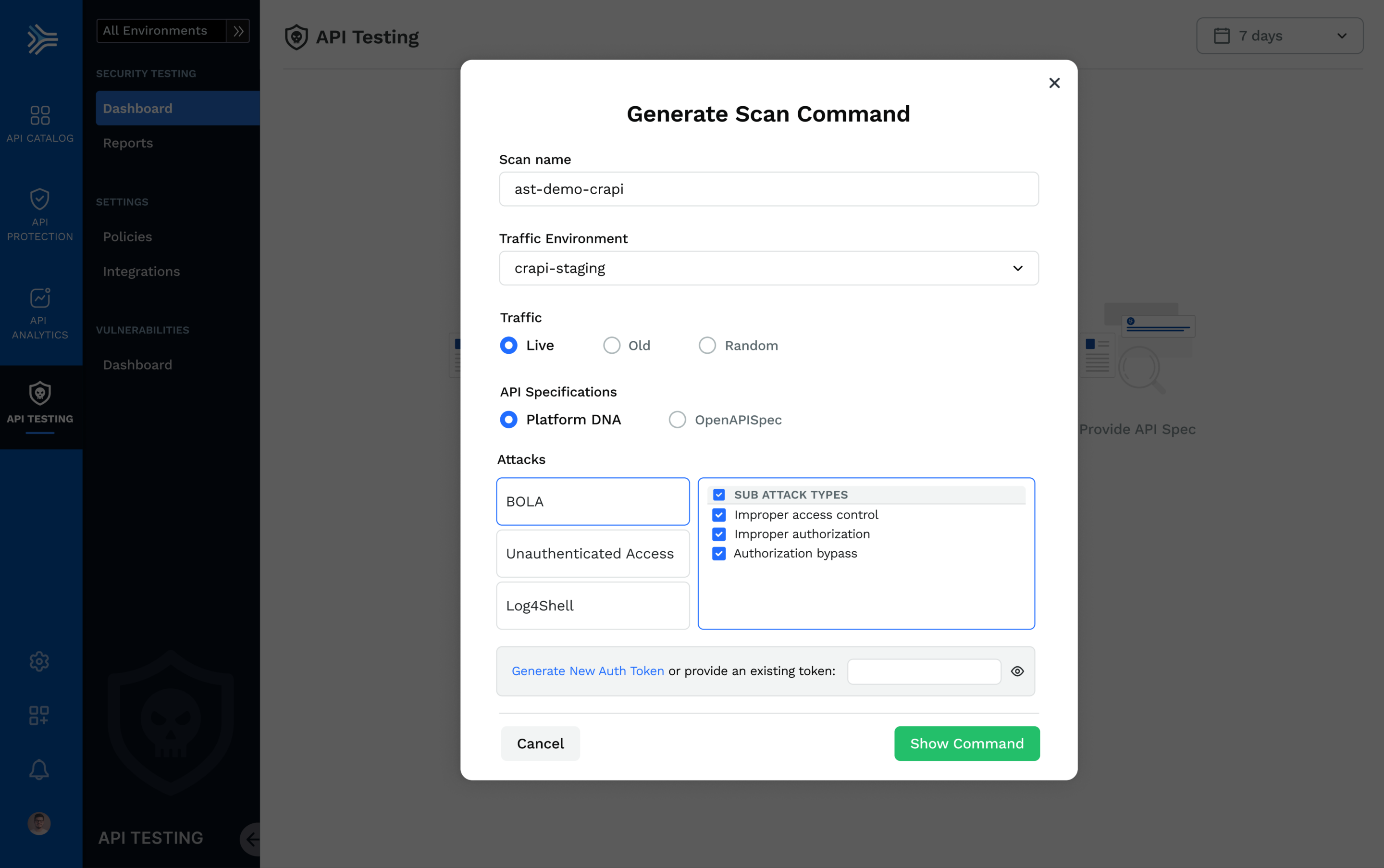 Traceable tests in real-time based on live traffic, with capabilities to generate and run tests on old traffic. It never generates tests for APIs that are inactive for a long time, or those that are never called. In other words, it is all about targeted testing on the active APIs with data that is close to actual parameters when the APIs are invoked at runtime. In addition, Traceable allows you to make pre-prod testing more efficient using production/runtime information.