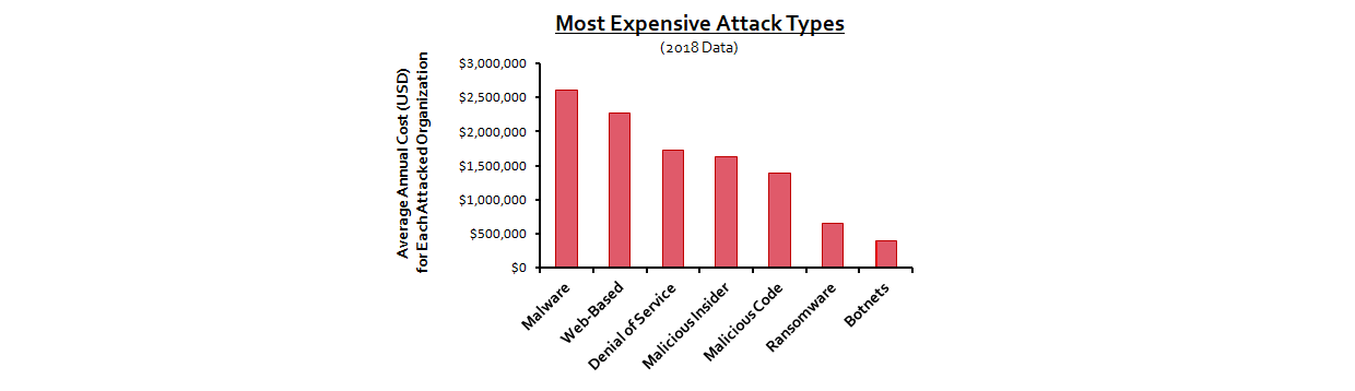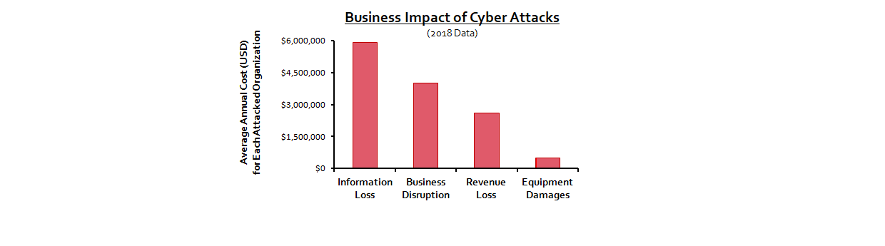 If it happens to you, your costs could reach as much as $13 million per year. (This is the 2018 average for the annual cost faced by each victim of cyber crimes). The expenses you may face are a combination of information loss, business disruption, revenue loss, and equipment damage.