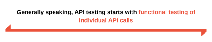 First, let's zoom out a little and look at API testing to see where security testing fits in. Generally speaking, API testing starts with functional testing of individual API calls. You can think of them as unit tests. There's a valid input and an anticipated response for each test, and running the test confirms that the response matches expectations.