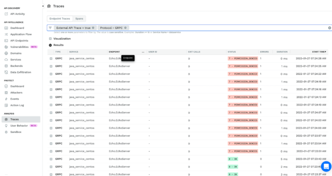 Traceable AI enables more flexible searching that now includes new regular expressions and ‘~’ operations that make it easier to search for a “substring” within a larger field in a trace. This improved functionality can help with root-cause analysis of detected security issues and advanced configuration tasks such as identifying specific sessions.