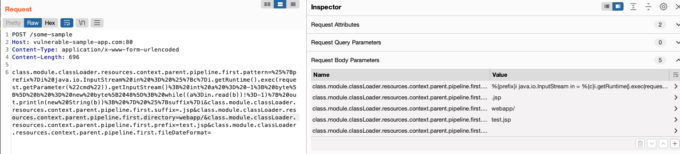- class.module.classLoader.resources.context.parent.pipeline.first.pattern: Will contain the content to be written