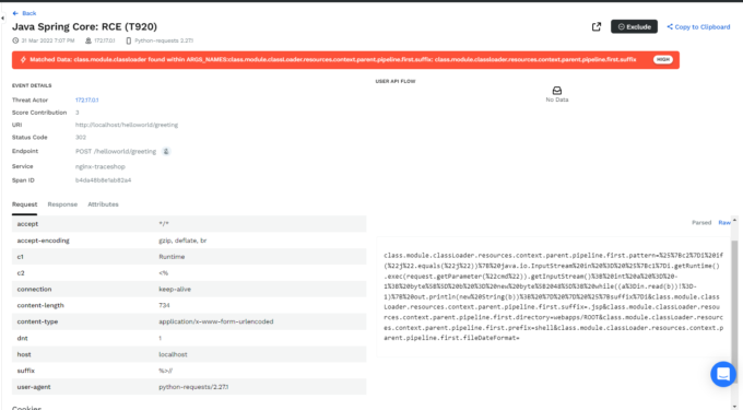 Traceable AI provides the ability to detect threat actors attempting to exploit this vulnerability and can be configured to block those bad actors in real time.