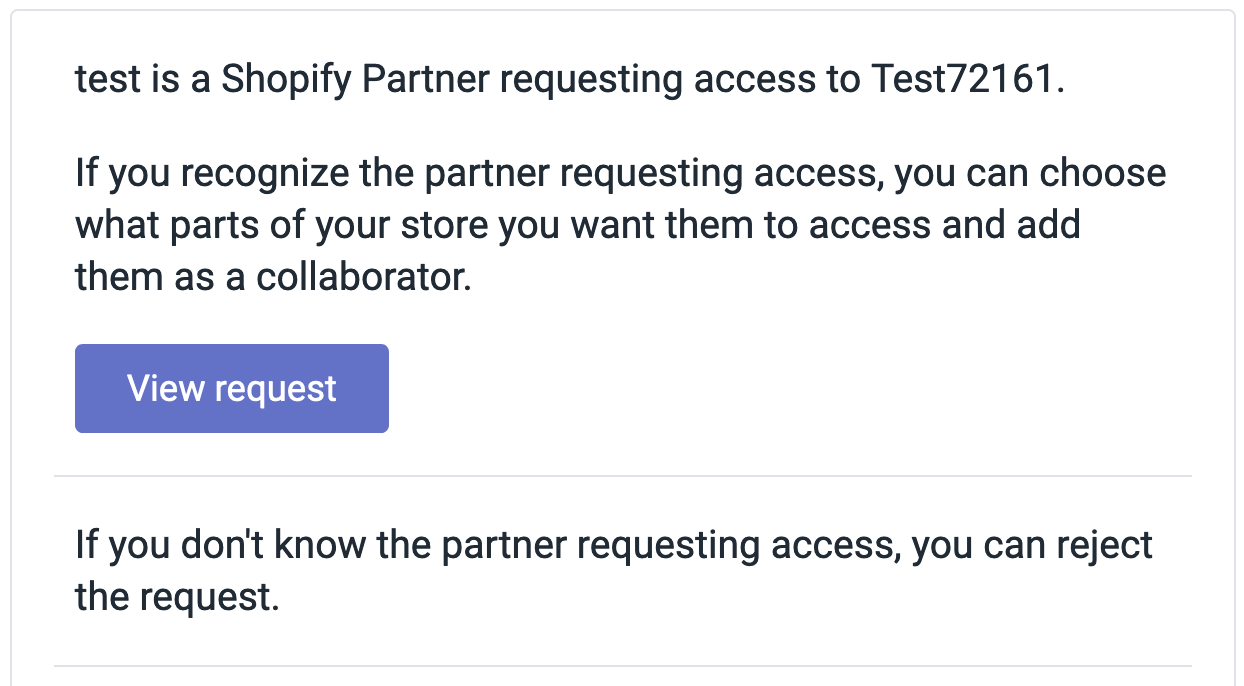 The process of requesting “collaborator” access to an existing store contains three steps: