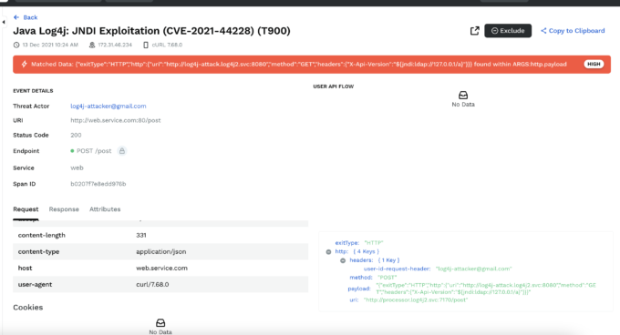 Traceable AI can help with new exploits (like those based on Log4Shell) in other ways than just detecting, blocking, and discovering. Traceable AI is a full security observability platform and watches all your application & API traffic for user and API behavior anomalies. It then records all the details about the chain of transactions (called traces). If a Log4Shell attack does happen, Traceable AI can tell you where it happened from, what user did the attack (not just what IP), what their attack history looks like over time, which services were attacked or used along the way to the attack point, what sensitive data might have been compromised, and so much more. All this correlated data can help you to do forensics, threat hunting, and figure out potential collateral damage.